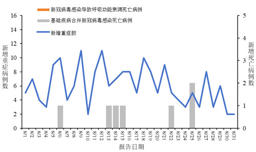 图3全国新冠病毒感染新增重症和死亡病例报告情况
