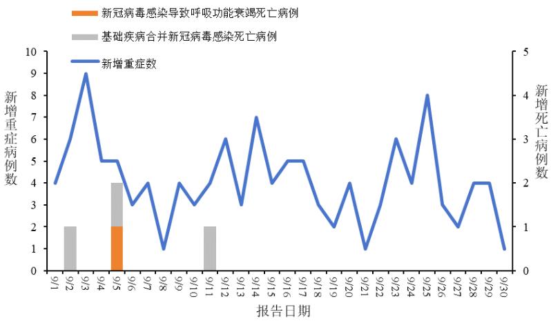 图3全国新冠病毒感染新增重症和死亡病例报告情况