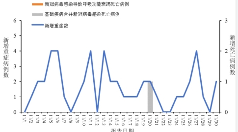 图3全国新冠病毒感染新增重症和死亡病例报告情况