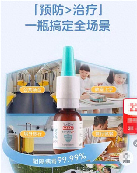 据了解,“液体口罩”产品原理为物理防护,不含药物成分,通过将产品以喷雾的形式喷入鼻腔,在鼻腔黏膜形成保护膜,阻止病毒、过敏原进入人体。