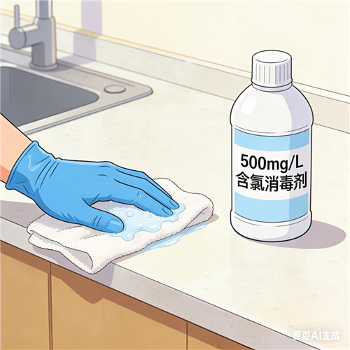 耐腐蚀物体如石质桌面或台面可选500mg/L含氯消毒剂擦拭消毒,让消毒剂在物体表面停留15分钟,然后用清水擦拭干净;