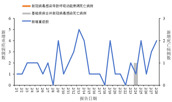 图3全国新冠病毒感染新增重症和死亡病例报告情况